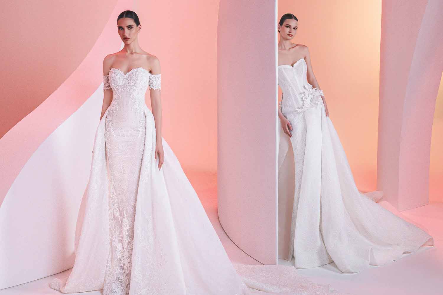 لإطلالة ملوكية حديثة، تُعدّ القصّة المزودة بكاب أو وشاح خلفي طويل اختيارًا مثاليًا. يُضفي هذا التصميم تأثيرًا دراميًا وآسرًا، خصوصًا عند التحرك أو المشي. يُمكن للكاب أن يحل مكان الطرحة في فساتين الزفاف، أو أن يُستخدم كطبقة أنيقة في فساتين السهرة. تُبدع كريستي رومانوس في دمج هذا العنصر مع تصاميم فساتينها عبر استخدام تول شفاف مطرّز أو شيفون خفيف يمنح الحركة بعدًا ساحرًا.