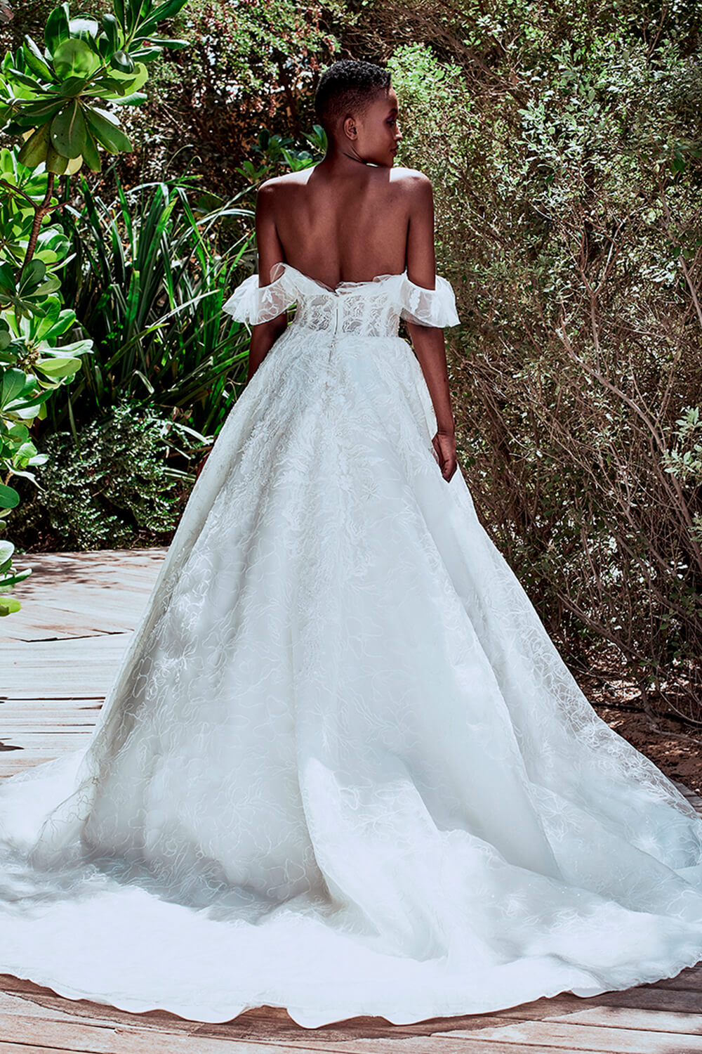 إنّ هذا الفستان بخط العنق على شكل الحرف “V” وتطريزاته المجردة يشكّل الخيار الأنسب للعروس التي تبحث عن لوك عصري وإنّما أبدي أيضاً.