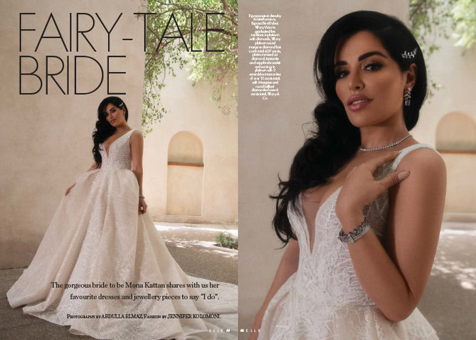 العروس الرائعة منى قطان تشارك مجلة Elle العربية فساتين إسبوزا كوتور والمجوهرات المفضلة لديها