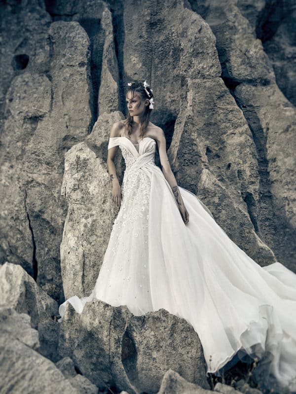 For its 2020 collection, Plume by Esposa by Kristie Romanos, creates again for the free-spirited bride, bridging the gap between imagination and reality. Inspired by every childhood’s garden of dreams where innocent emotions weave utopian fantasies, the collection proposes wedding dresses that combine dreamy romance with a firm wild flair.